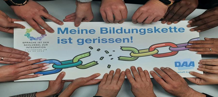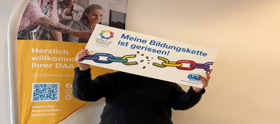 Die Deutsche Angestellten-Akademie Baden-Württemberg beteiligt sich mit der Kampagne „Meine Bildungskette ist gerissen“ am bundesweiten Aktionstag und macht damit auf ein wichtiges Thema aufmerksam: Die unzureichende Förderung der berufsbezogenen Deutschsprachkurse.